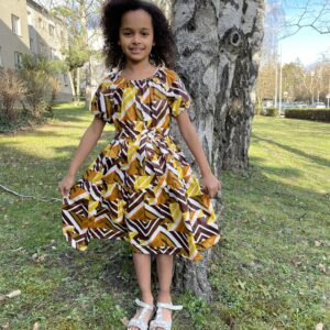 African Girls Dress Brown-orange flowers