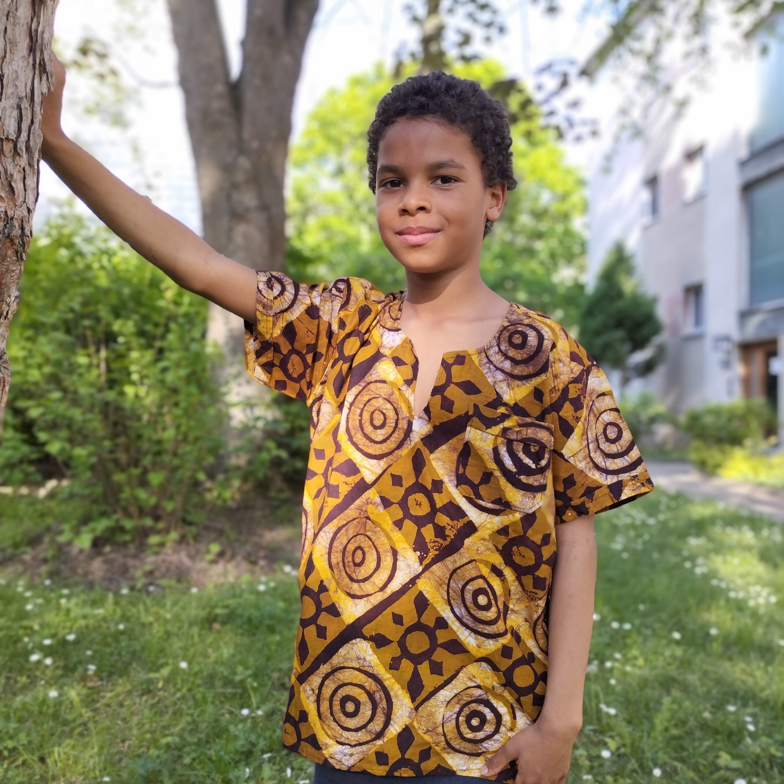 African kid shirt brown batik Size 116-128
